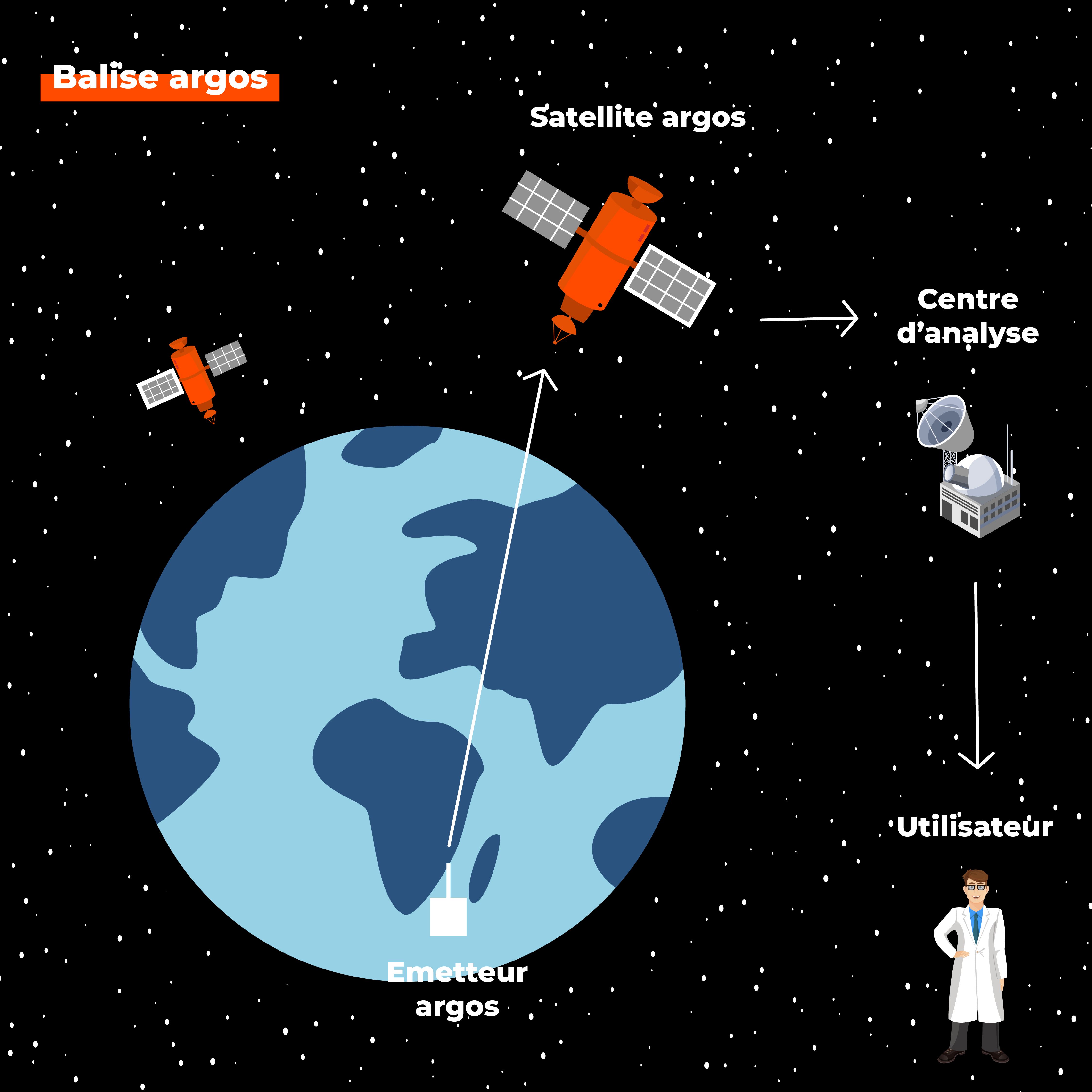 Les balises Argos émettent régulièrement de courts messages qui sont retransmis au sol par les satellites.
