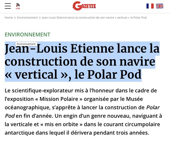 Jean-Louis Etienne lance la construction de son navire « vertical », le Polar Pod - La Gazette de Monaco