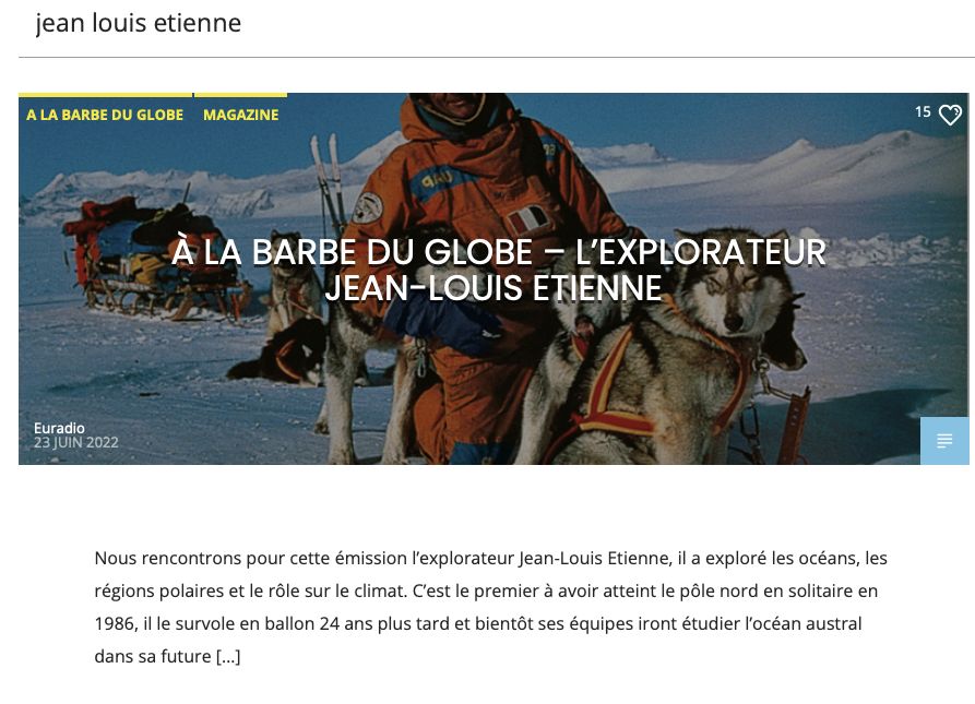 A LA BARBE DU GLOBE - L'EXPLORATEUR JEAN-LOUIS ETIENNE - EU!RADIO