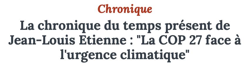 La chronique du temps présent de Jean-Louis Étienne : "La COP27 face à l'urgence climatique" - LA MONTAGNE
