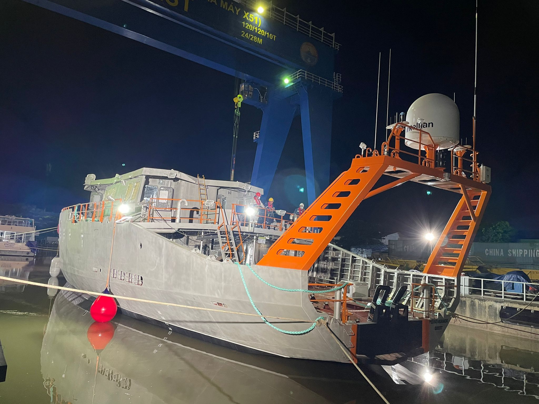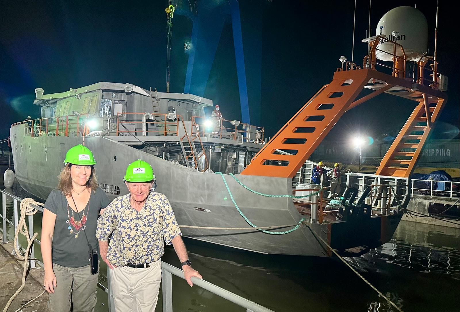 Jean-Louis et Elsa sont à Hô Chi Minh, sur le chantier PIRIOU pour la mise à l’eau du navire avitailleur du #PolarPOD.