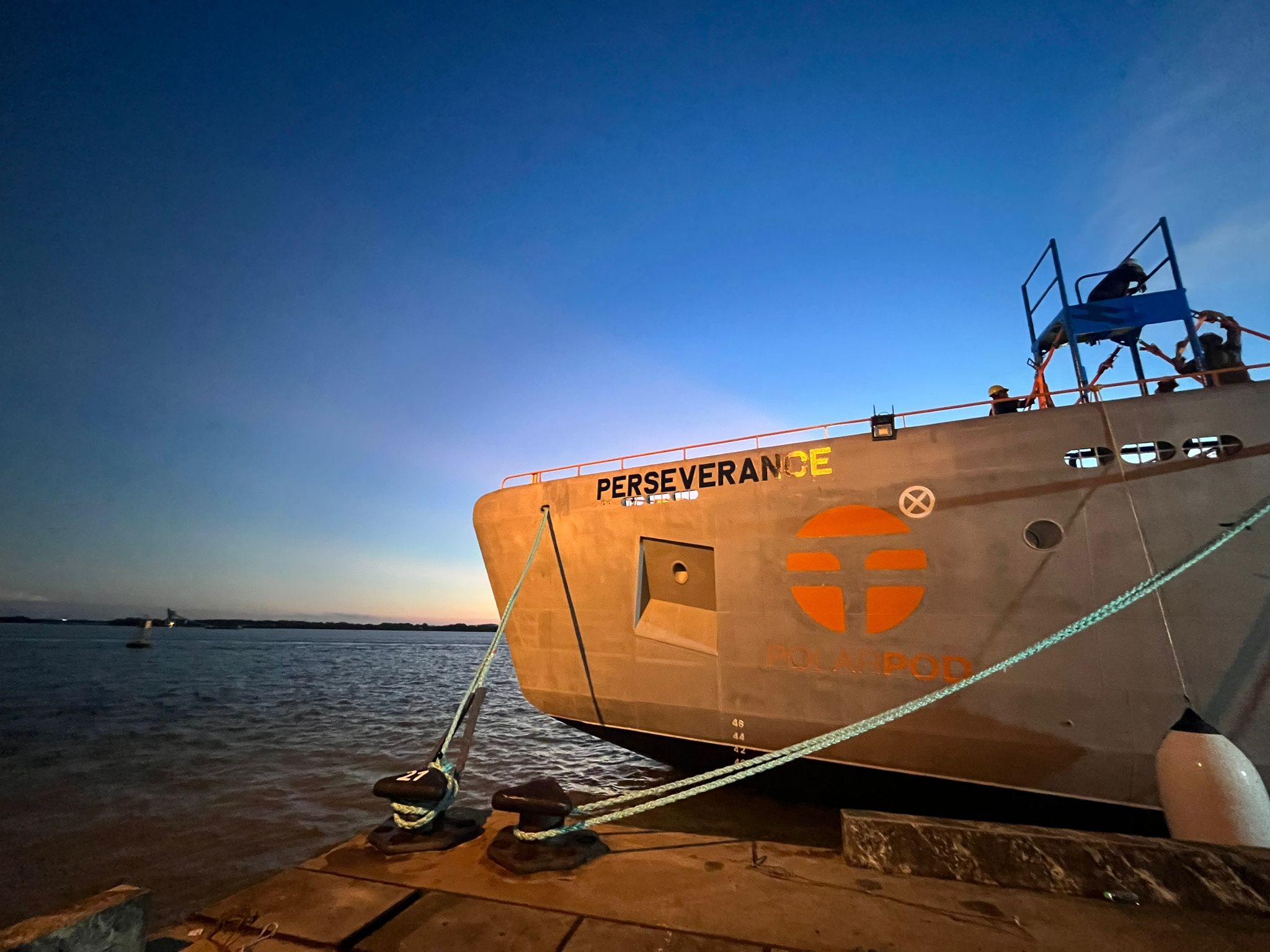Après l’inauguration du PolarPODibus, véhicule pédagogique de l’expédition, c’est au tour du navire avitailleur de nous faire rêver.