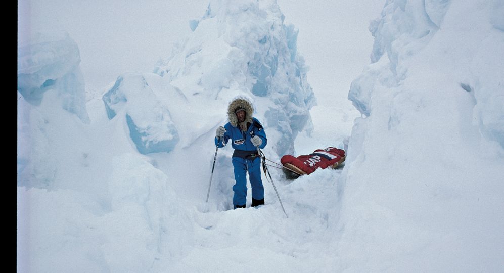 En rentrant de la face Nord de l’Everest, à bientôt 40 ans, le pôle Nord s’impose comme une évidence, une navigation sur la banquise de l’océan Arctique qu’il décide d’entreprendre seul en tirant son traineau.