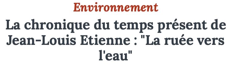 La chronique du temps présent de Jean-Louis Etienne : "La ruée vers l'eau" - LA MONTAGNE