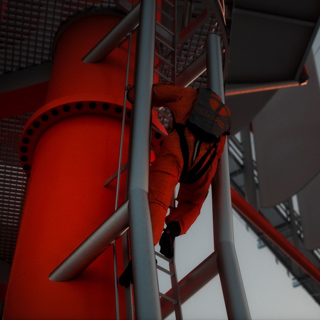 Lors des relèves d’équipage, et lors du ravitaillement, quand le temps le permettra, les équipiers pourront utiliser l’échelle extérieure pour accéder directement au Polar POD. On appelle cela du boat landing, qui peut se faire jusqu’à une houle de 3 m.