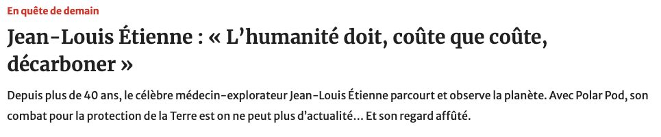 En quête de demain. Jean-Louis Étienne : « L'humanité doit, coûte que coûte, décarboner » - L'Alsace