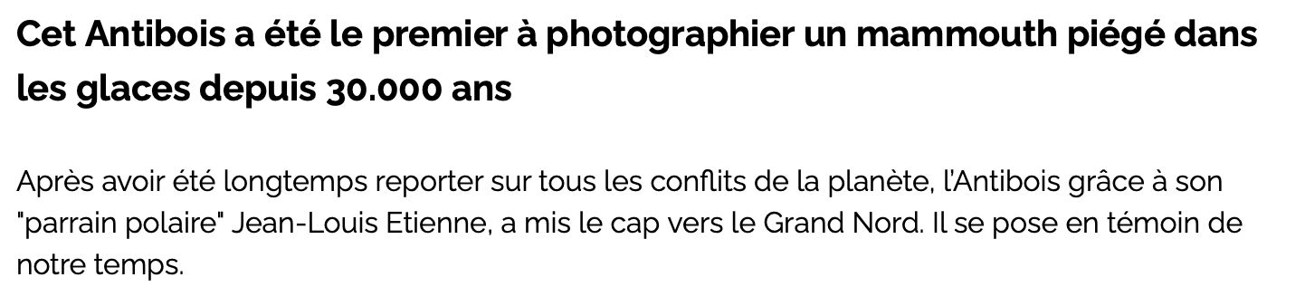 Après une carrière de reporter sur tous les conflits de la planète, l'Antibois Francis Latreille a mis le cap vers le Grand Nord grâce à son "parrain polaire" Jean-Louis Etienne. II se pose en témoin de notre temps.