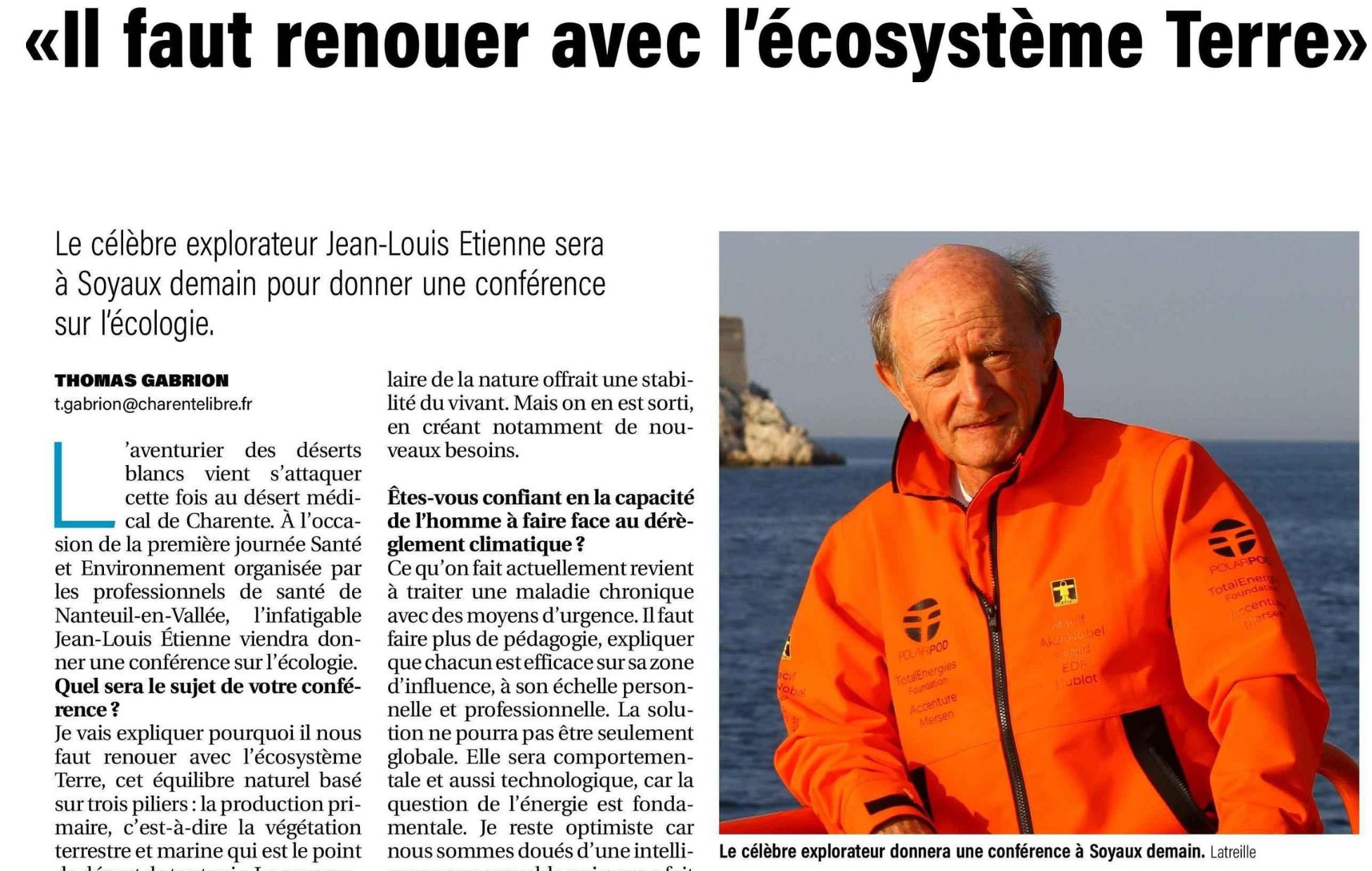 Il faut renouer avec l'écosystème Terre - Le célèbre explorateur Jean-Louis Etienne sera à Soyaux demain pour donner une conférence sur l'écologie- La Chatrente Libre