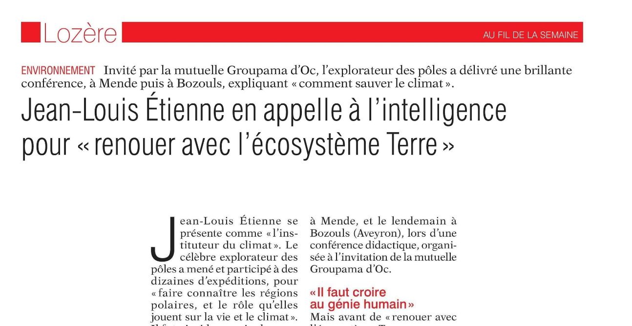ean-Louis Etienne en appelle à l’intelligence pour « renouer avec l’écosystème Terre » - Le Réveil Lozère