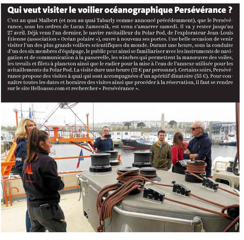 Qui veut visiter le voilier océanographique Persévérance ? - LE TELEGRAMME