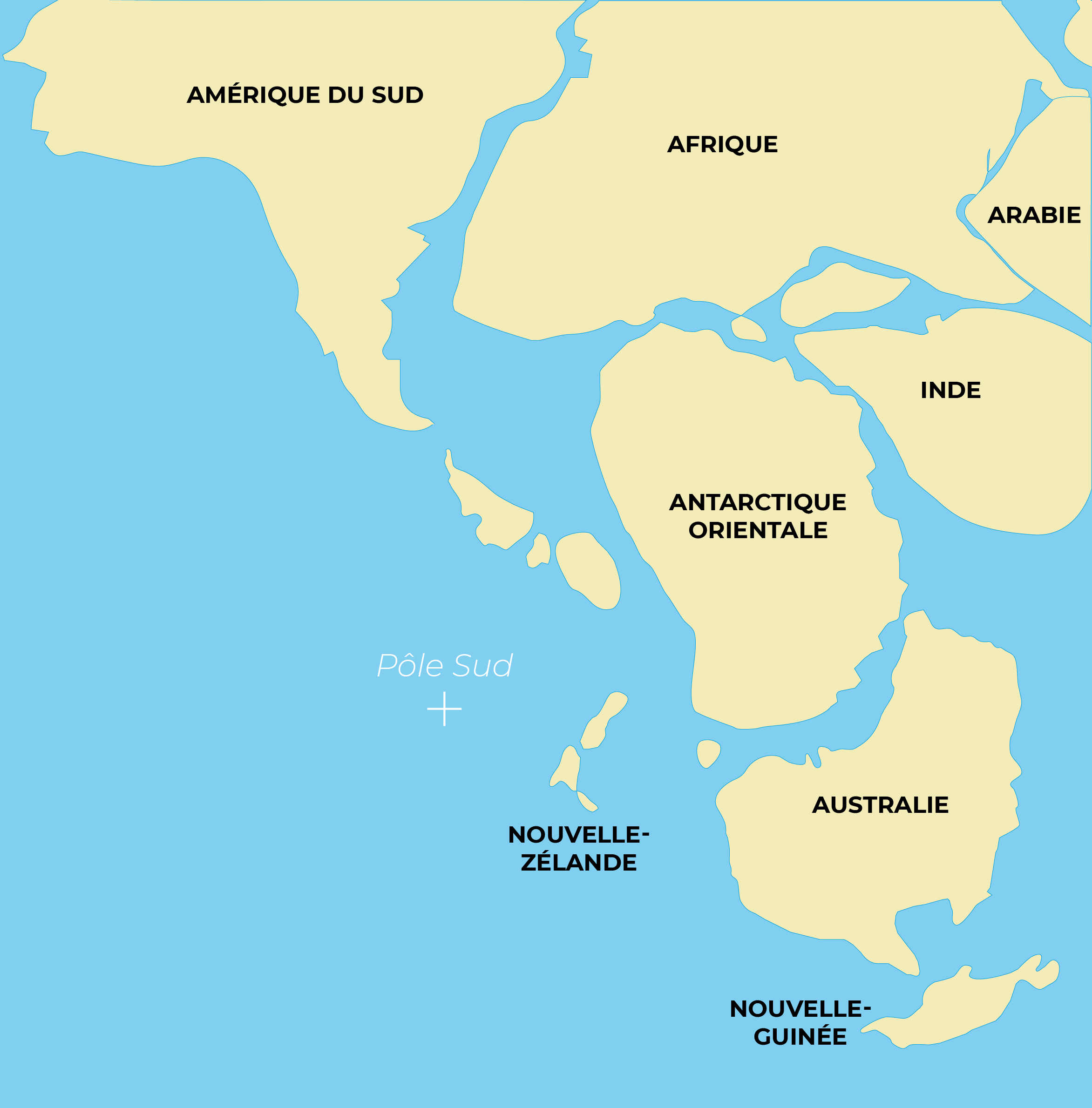 Le Gondwana il y a environ 150 millions d'années : les fragments de l'Antarctique occidental sont incertains.