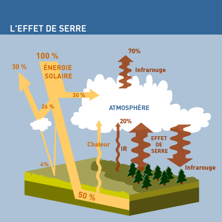À l’origine très naturel et précieux pour l’équilibre de la Terre, l’effet de serre peut être amplifié si les teneurs des gaz qui en sont responsables augmentent. Et c’est justement ce que produisent nos activités humaines. Cette augmentation de ” l’effet de serre ” due à nos rejets polluants est inquiétante pour l’avenir de notre climat.