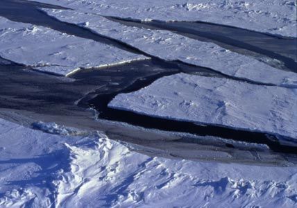 Sous l’effet des vents, des courants, des marées, la banquise se fragmente et se reforme sans cesse. Ici, des chenaux d’eau libre s’ouvrent, ainsi que des sortes de lacs intérieurs (polynies) dus à des remontées locales d’eau moins froide. Là, les fissures se referment.