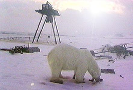 DDT, PCB, hydrocarbures, métaux lourds, radio nucléides : dernier maillon de la chaîne alimentaire océanique, l’ours blanc stocke dans ses graisses, tous les polluants ; aussi bien ceux rejetés par les exploitations minières et pétrolières locales que ceux qui sont acheminés jusqu’à eux par les cours d’eau, les courants marins et la circulation atmosphérique.