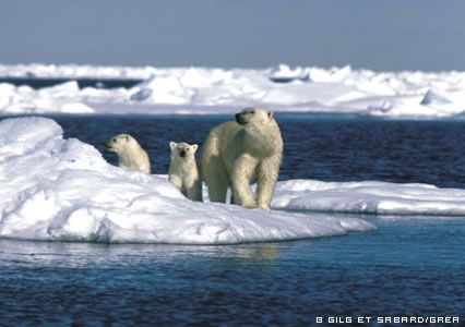 > Les ours polaires sont tellement au chaud dans leur couverture de poils et de graisse que, l’été, ils recherchent les zones encore enneigées ou se creusent un abris, au frais, dans le permafrost !